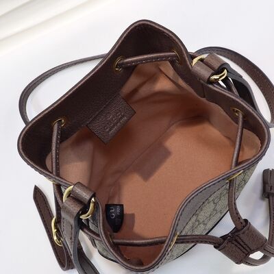 Elevate your luxury accessory lineup with the New Classic Printed Gucci Small Bucket Bag—a timeless women's leather piece that merges European and American retro charm with versatile functionality for the modern fashion enthusiast. Crafted from a premium blend of genuine cowhide and leather canvas, this bag strikes the perfect balance between rugged durability and refined texture. The cowhide adds structural integrity and a luxe tactile feel that ages beautifully with wear, while the leather canvas ensures lightweight ease for all-day carry.