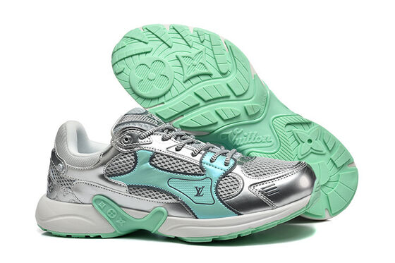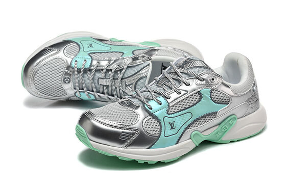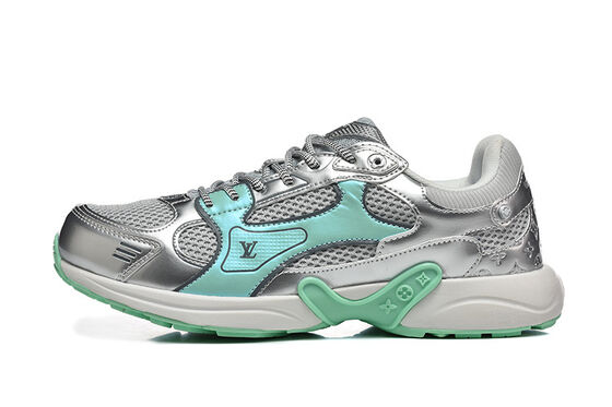 Novos tênis esportivos da moda - Louis Vuitton - versátil couro genuíno borracha salto alto respirável e resistente ao desgaste sapatos de superfície de malha costurada antiestática - cor prata