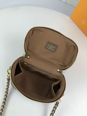 New classic monochrome lock vanity mini makeup bag, chain shoulder bag, Louis Vuitton handbag, box bag, genuine leather cowhide print, sweet zipper, new lv fresh