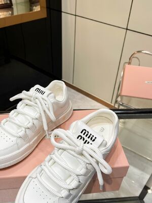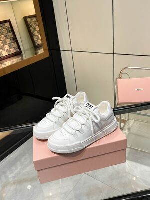 Thick-soled Lace-up Miu Miu Sneakers, New Style, Low-top, White Sneakers