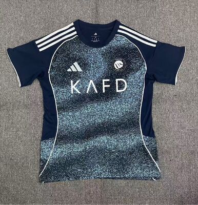 This 25–26 Al-Nassr FC away jersey combines team pride with outstanding wearing performance. The soft, skin-friendly material is fade-resistant and maintains its shape well after repeated washing, ensuring long service life. Its stylish and streamlined design highlights the club’s unique identity while providing all-day comfort. With a complete size selection covering S to 4XL, it meets the needs of fans of all ages and figures. Whether worn to cheer in the stadium, practice on the field, or match with casual wear, it integrates excellent breathability, reliable quality, and strong team spirit, becoming a must-have item for every Al-Nassr supporter.